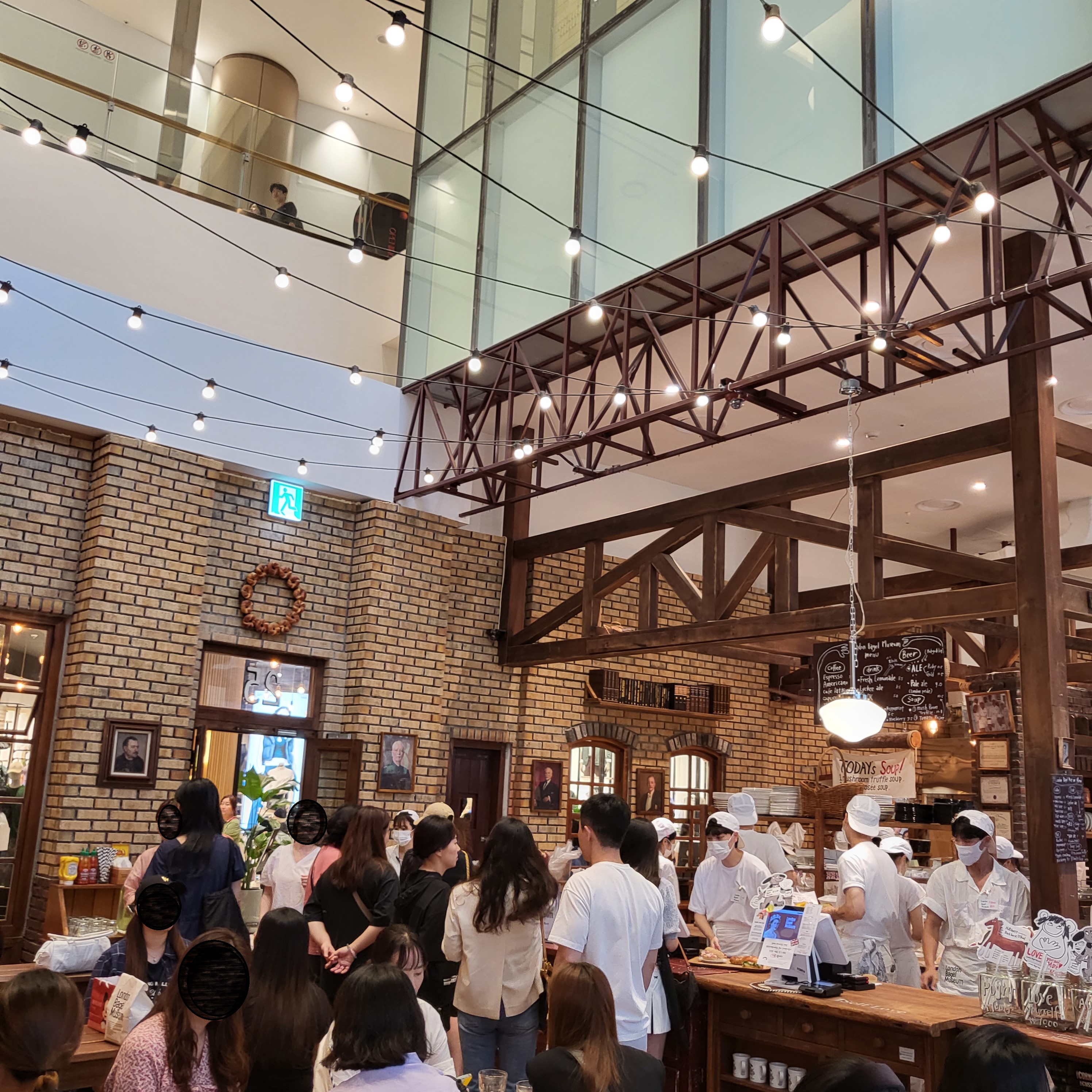롯데월드몰은 모던하고 세련된 건물인데 그 와중에 런던베이글은 빨간 벽돌과 목조를 위주로 아늑하고 따뜻한 분위기를 자아낸다. 롯데월드몰과 런던베이글의 어울리지 않는 이질적인 분위기를 보고 있자니 해리포터에서 나오는 4와 3/4 승강장을 기준으로 머글세계와 마법세계가 완전히 다른 분위기를 보였던 것이 생각났다. 이런 디자인도 노린 걸까?!