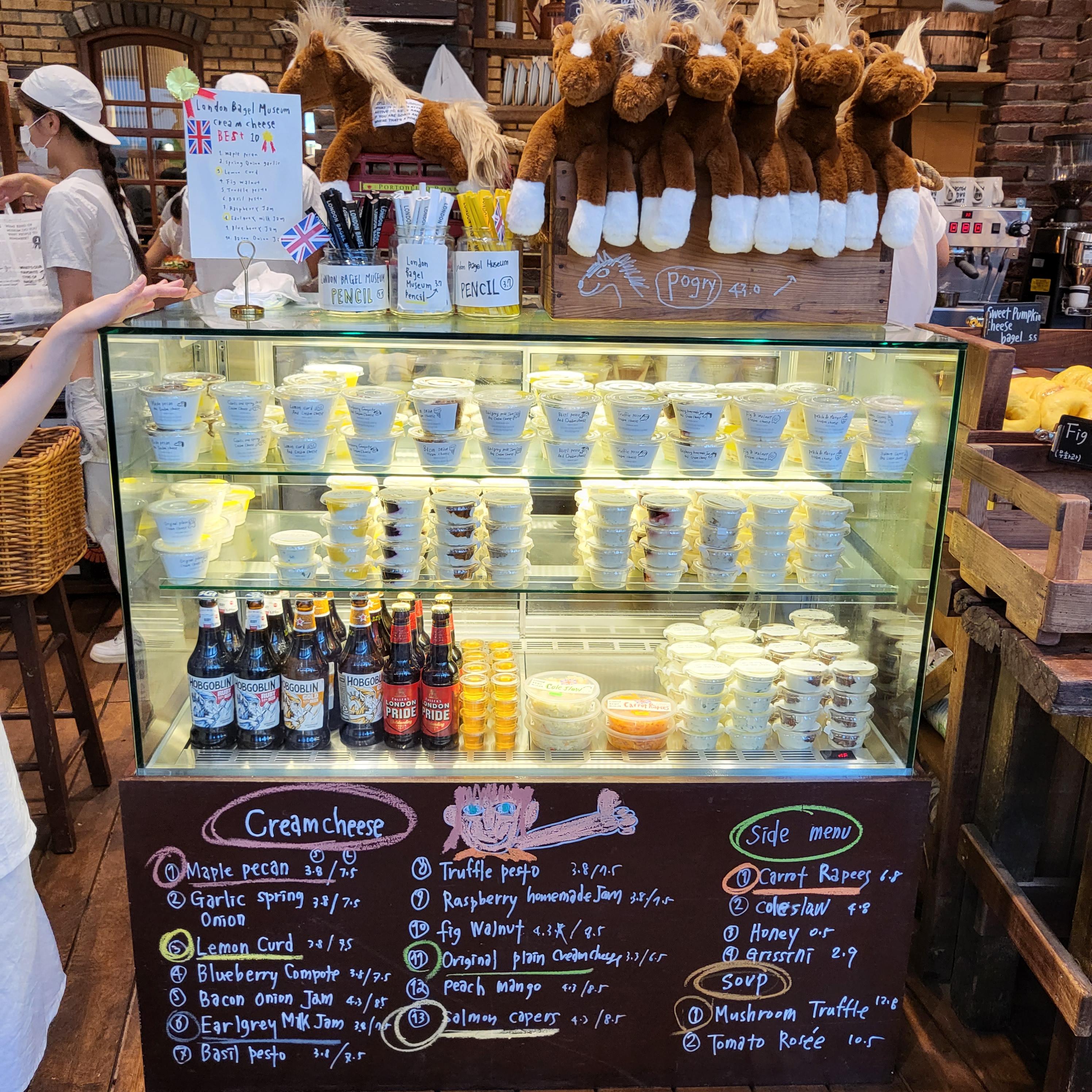 베이글 말고 크림치즈랑 사이드메뉴도 별도로 구매할 수 있는데, 보기 편하게 인기순으로 리스트업이 되어 있어서 나는 크림치즈 3개 사 왔다.