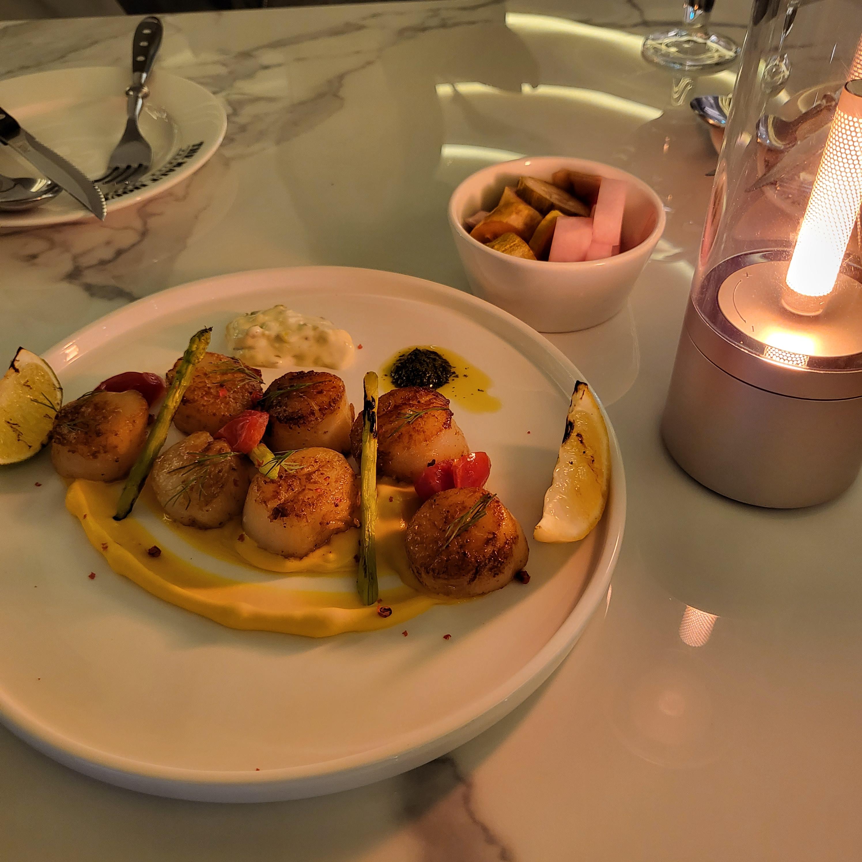 1) 관자 스테이크: 가격에 비해 관자가 정말 몇 개 없었지만 원래 관자가 비싼 부위이니ㅠㅠ 입에 넣으면 살짝 짭짤하다가 살살 녹는다. 정말 맛있었음...!