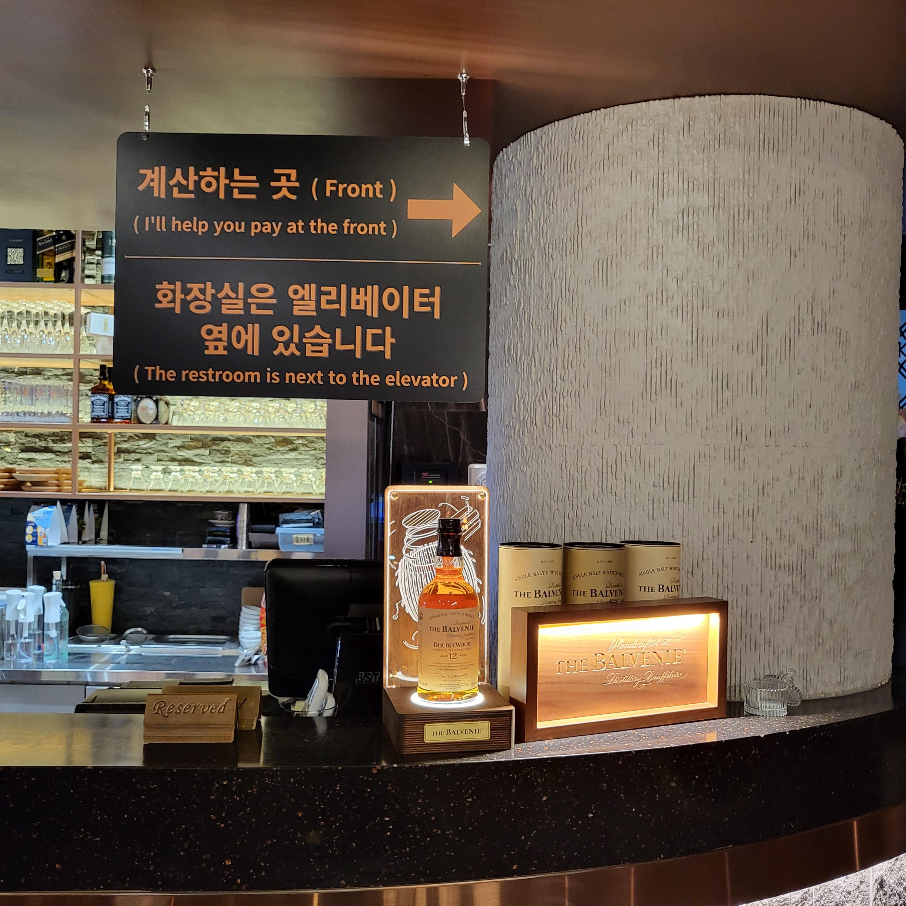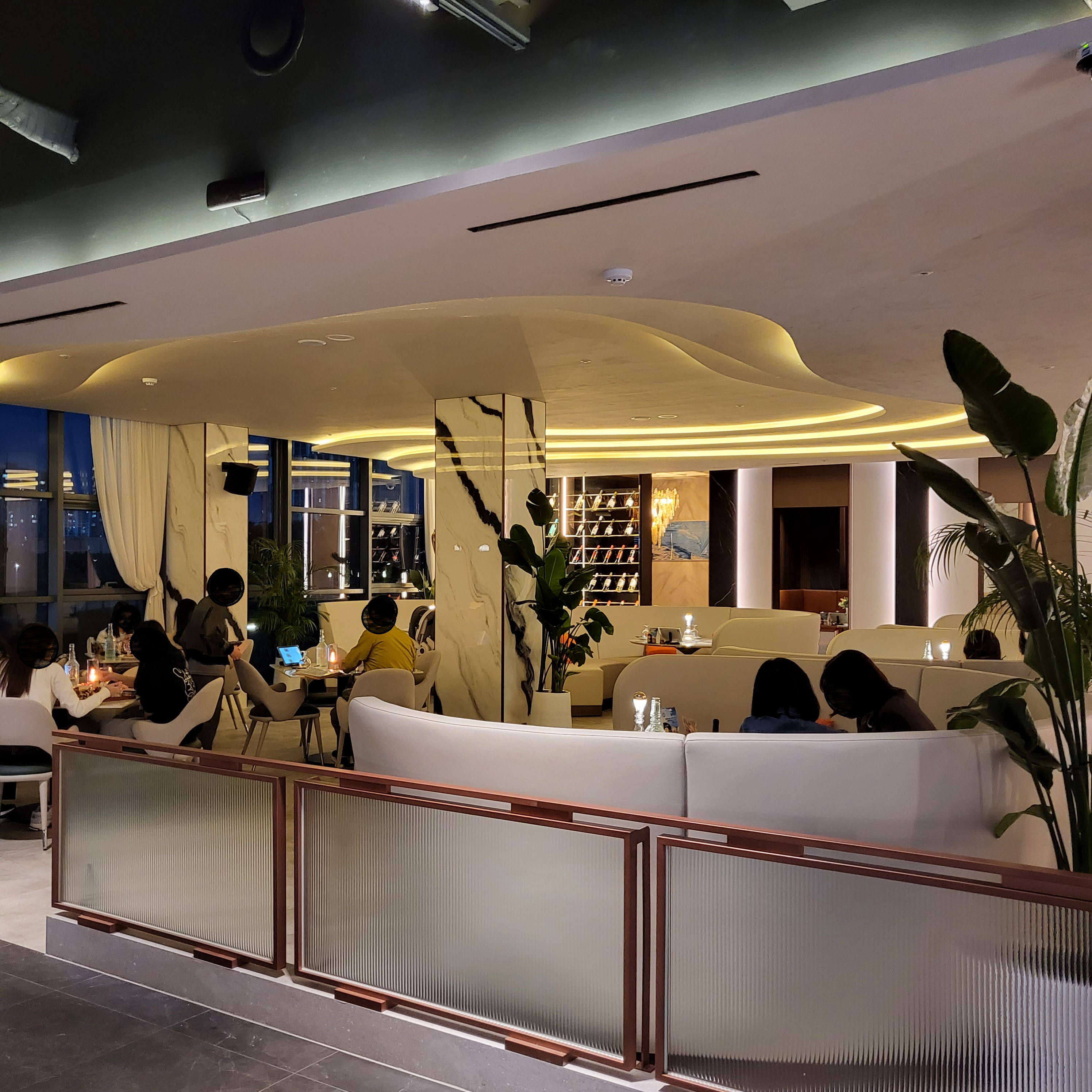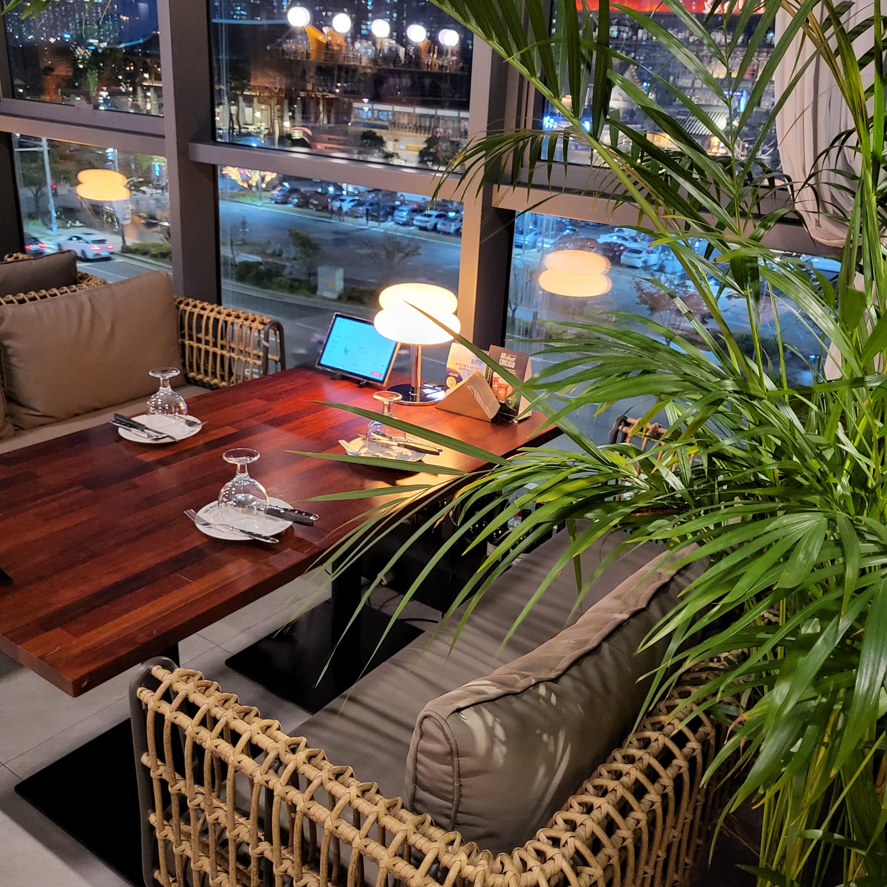 경원재를 볼 수 있는 센트럴파크뷰 창가 자리에 앉고 싶다면 전화 예약을 꼭 해야 한다. 나는 예약을 따로 하지 않아 중간 자리에 앉았는데 내부가 이뻐서 중간 자리도 나쁘진 않았다. 원목으로 된 자리도 있었고, 푹신한 소파 같은 자리도 있어서 본인 취향껏 앉으면 될 것 같다. 아, 그리고 바 주변도 예뻐서 다음에는 바에서 맥주 한 잔 하고 싶다는 생각도 했다.