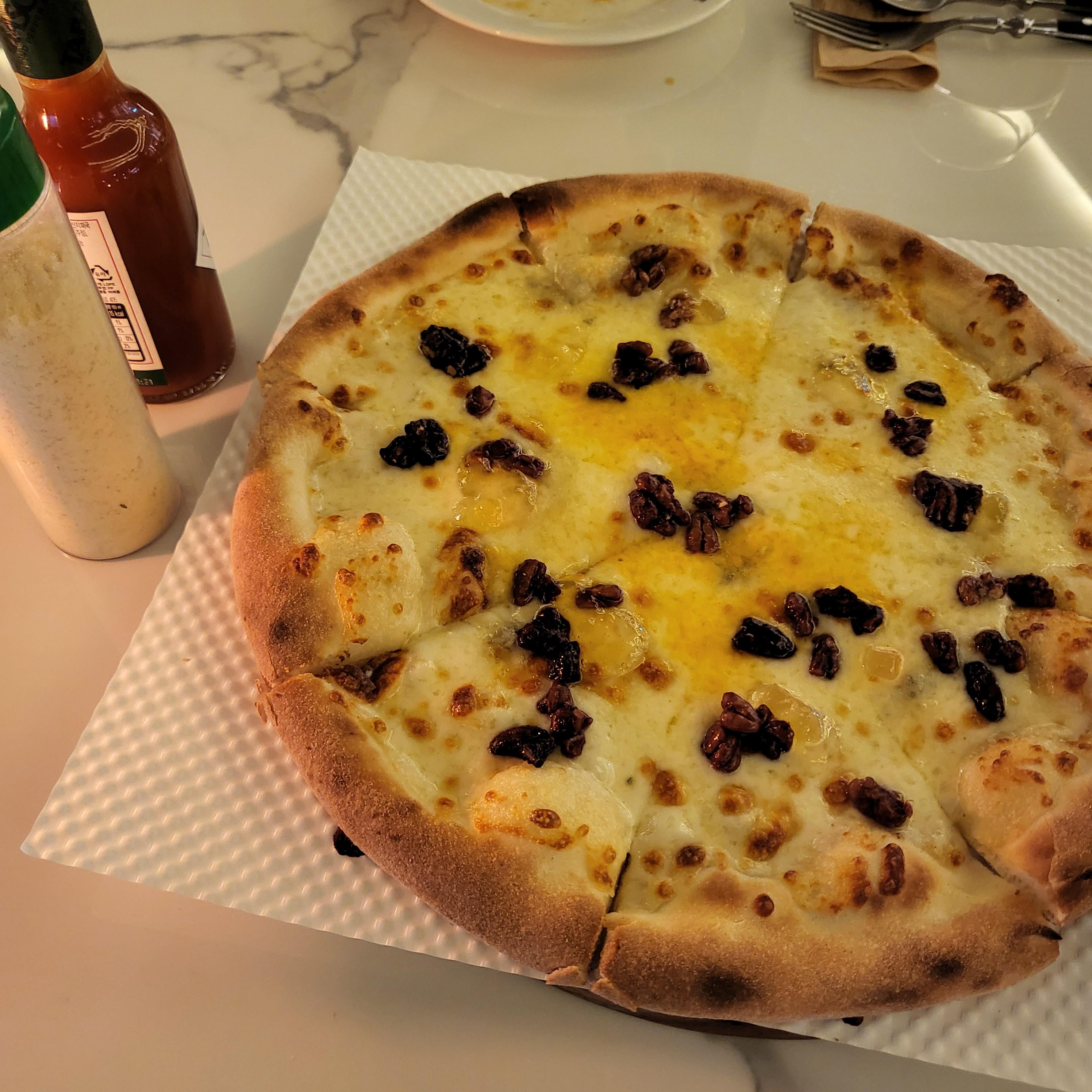 2) 고르곤졸라 피자: 꿀이 안 나오는데 따로 말씀드렸더니 가져다주셨다. 꿀에 찍어 먹는 것도 맛있었고 안 찍어먹어도 맛있었다. 개인적으로 살짝 튀긴 듯한 호두가 완전 내 취향이었음.
