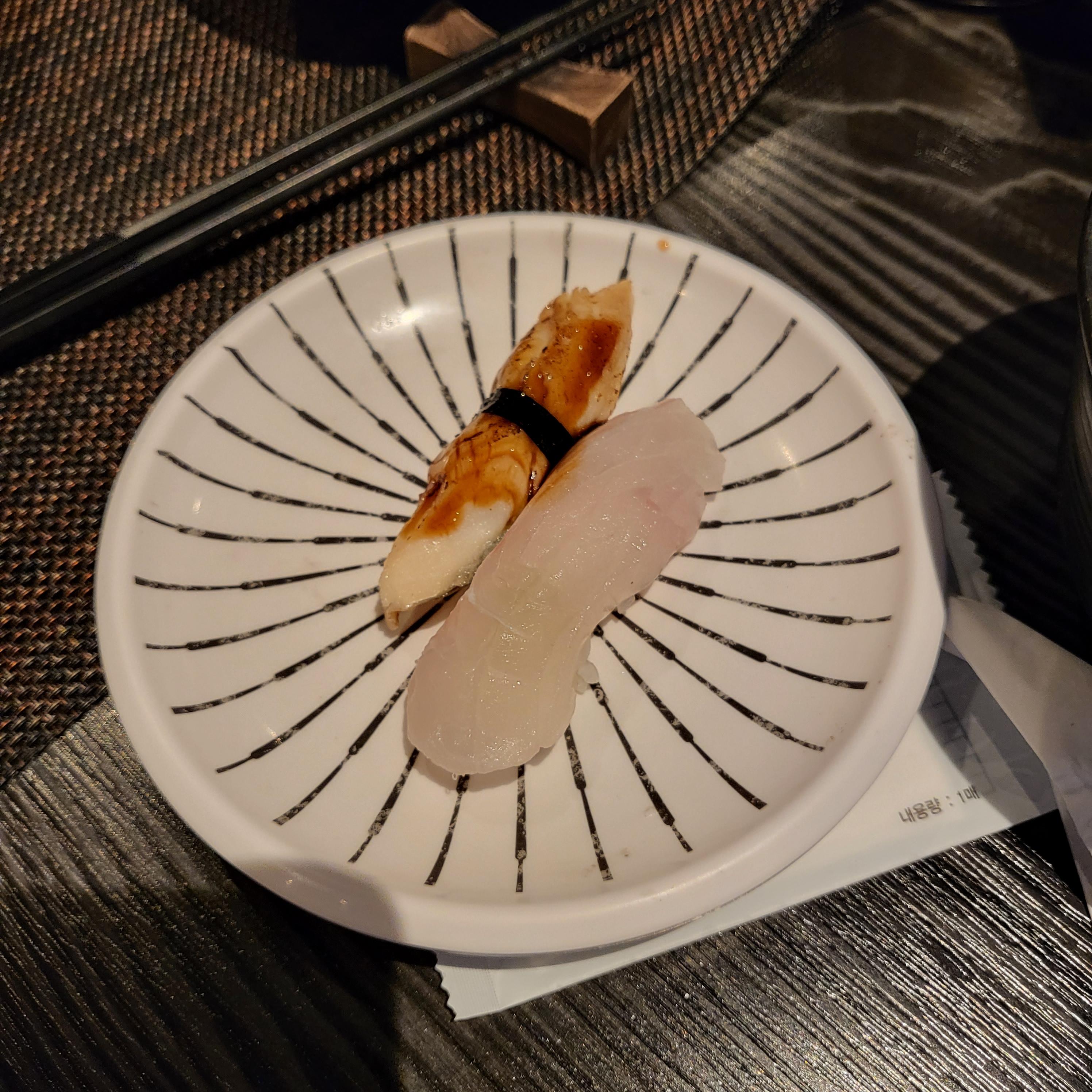 2) 스시 13종: 접시 하나하나 서빙해 줄 때마다 스시에 대한 설명을 하나씩 해주심. 마지막 1pc는 내가 원하는 종류로 하나 선택하면 그걸로 만들어 줌.