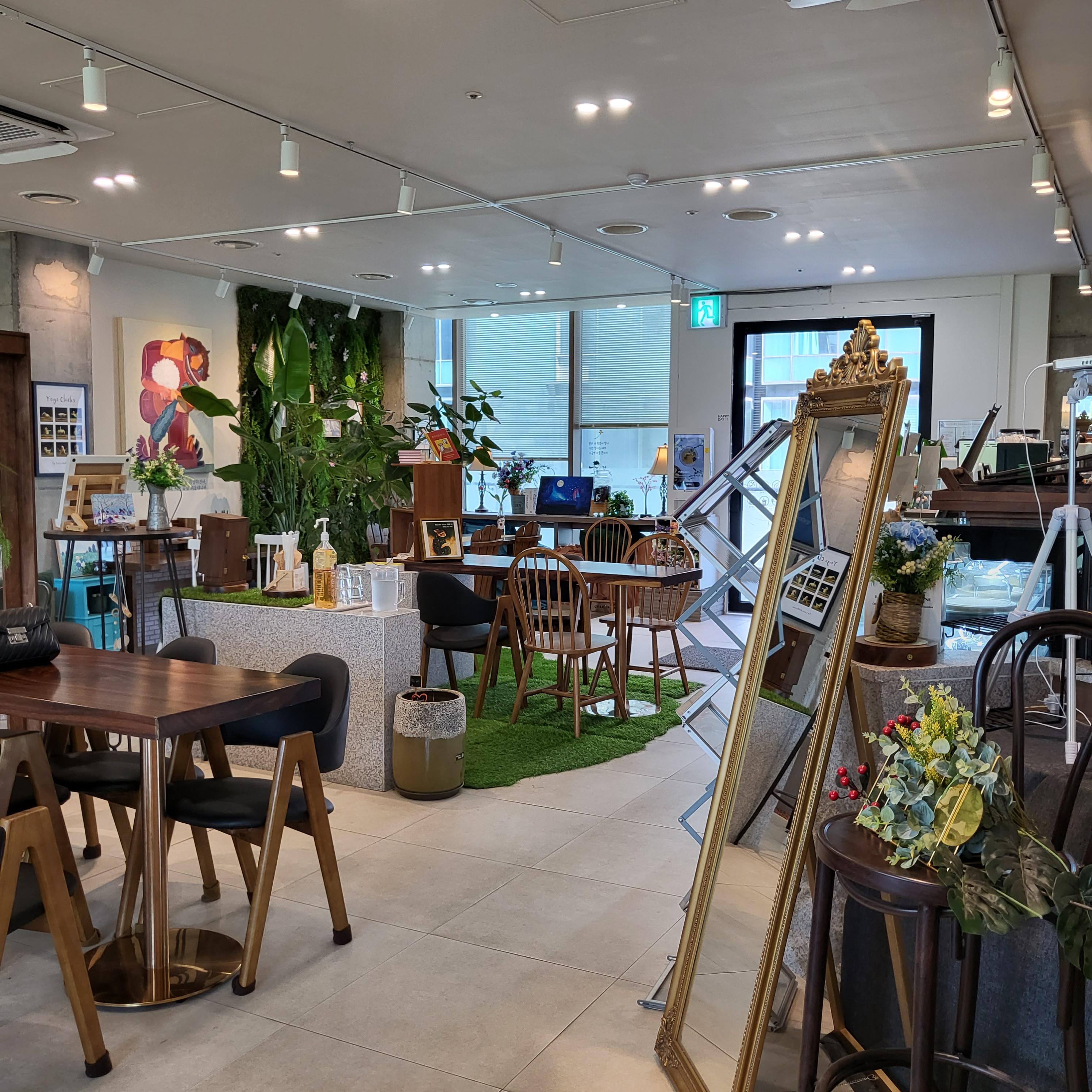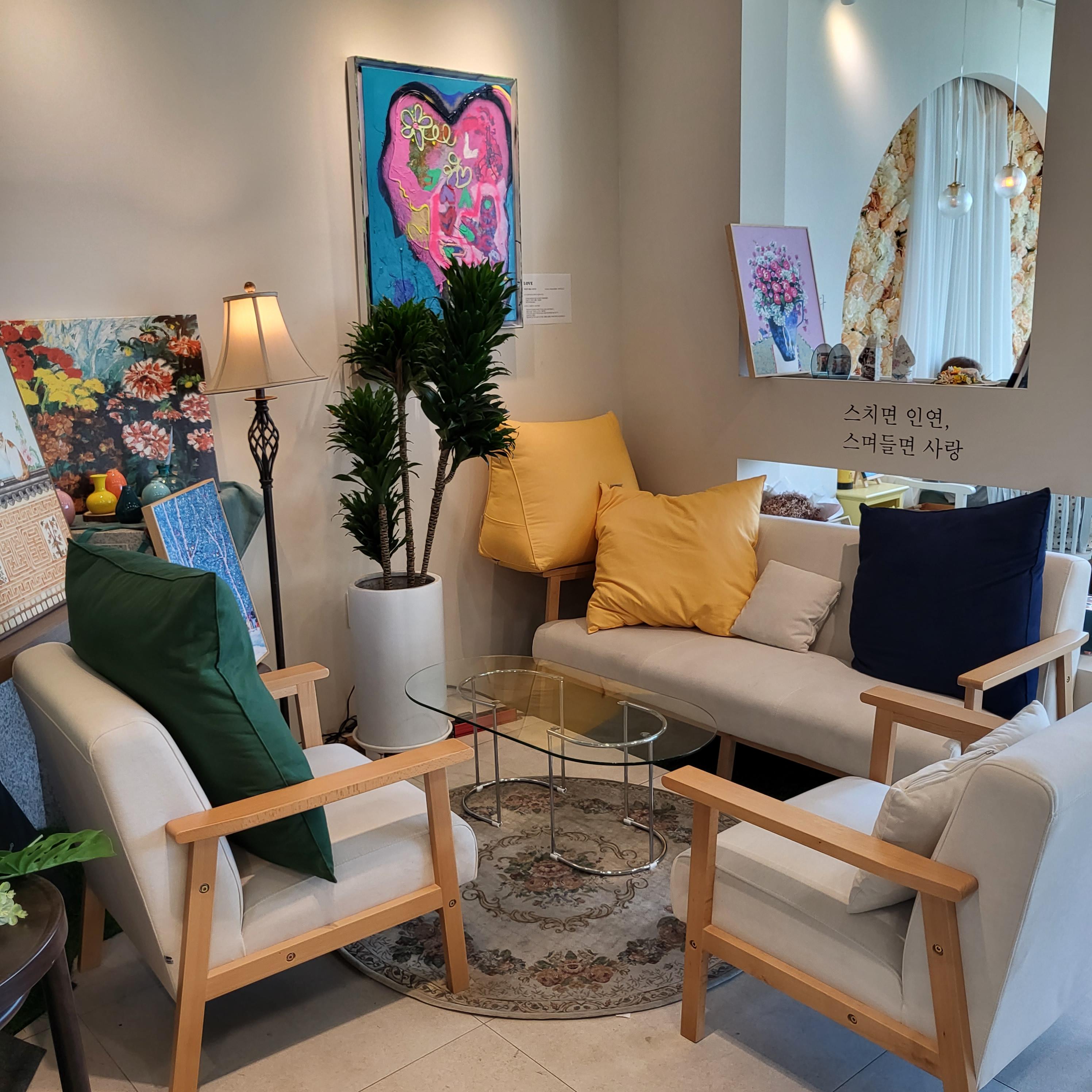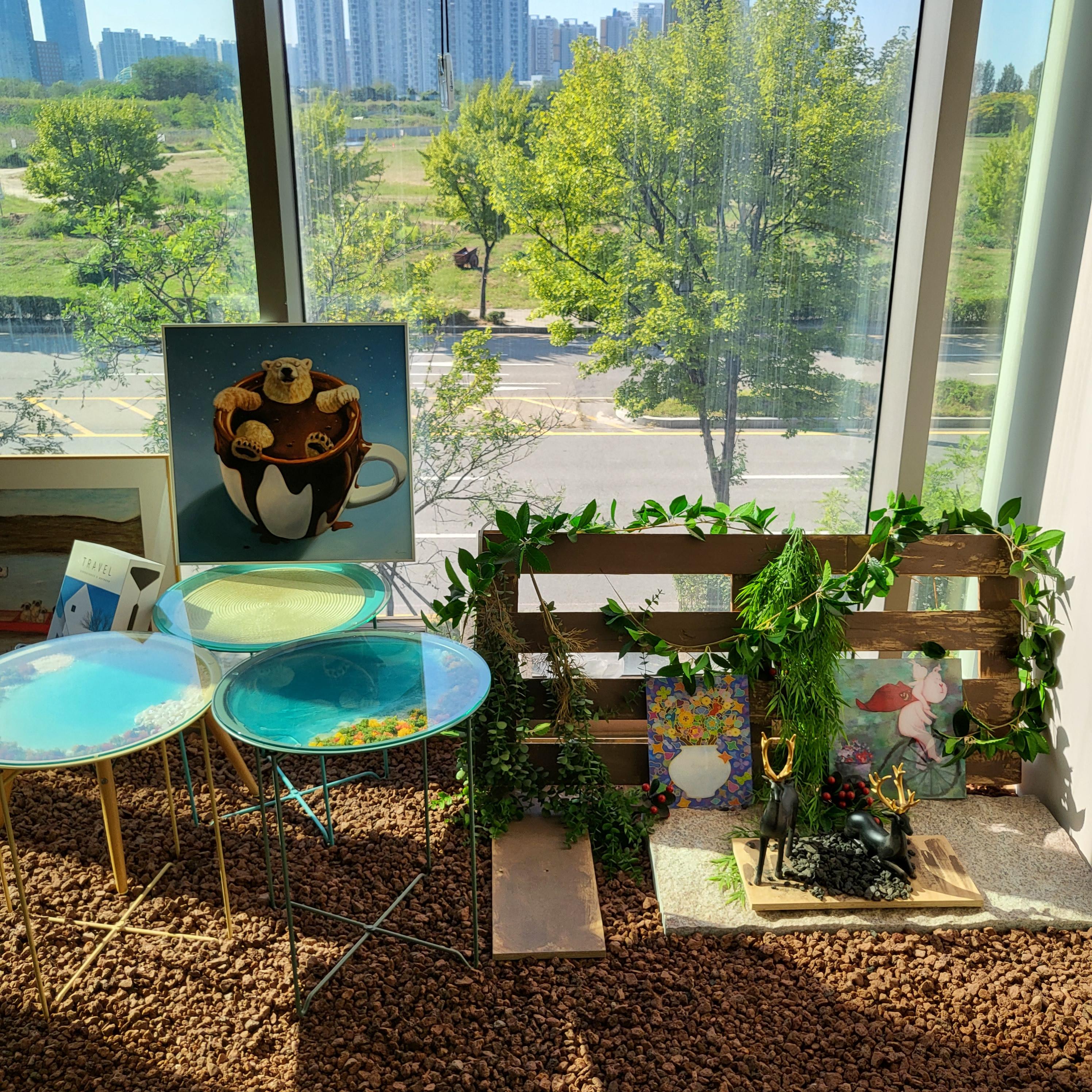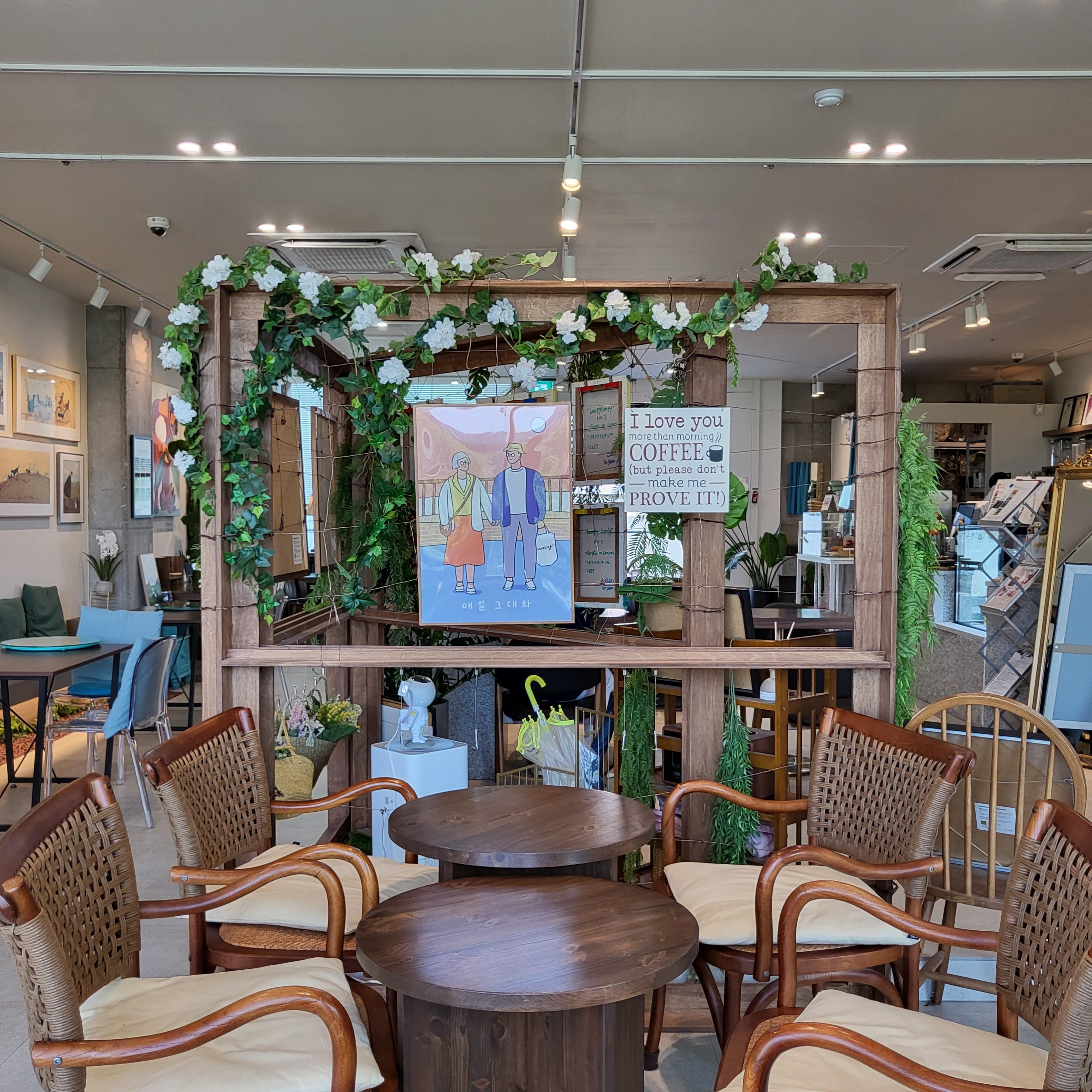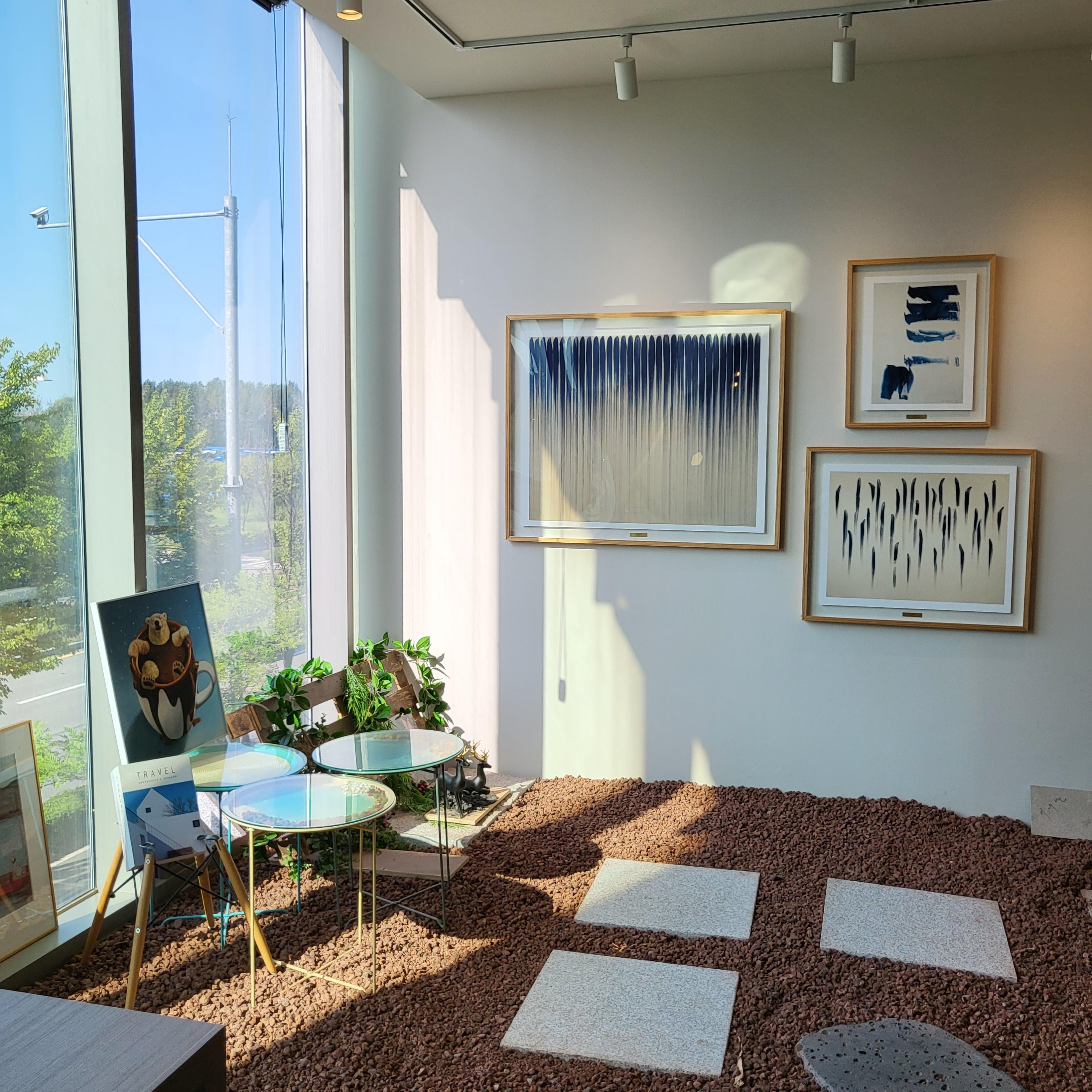 대형카페보다는 작지만 그렇다고 엄청 작지도 않았고, 자리도 어느 정도 넉넉히 있었다. 갤러리 카페답게 안에 그림이 정말 많아서 그림 보는 재미도 있고 아기자기한 인테리어 소품 보는 재미도 있다. 내가 방문한 날은 날씨가 좋아서 창문으로 햇살이 들어오는데 카페 전체가 하나의 그림 같았다. <3