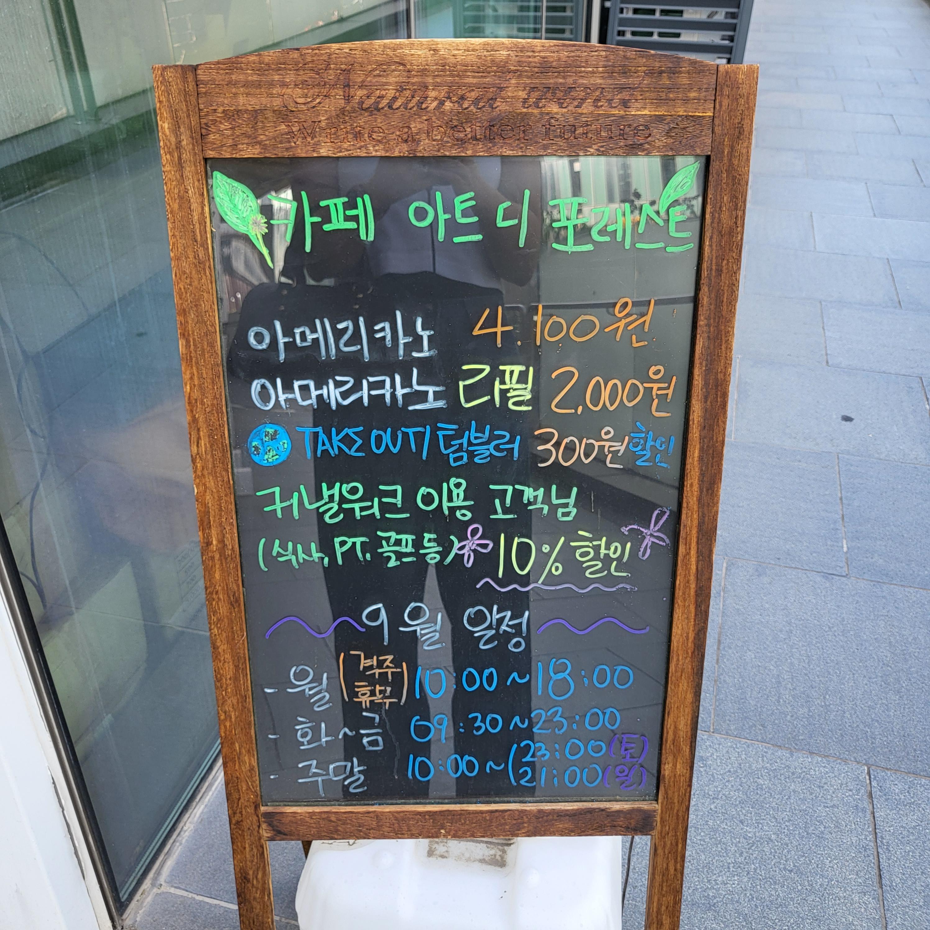 2층으로 올라가면 이렇게 입간판도 있어서 금방 찾을 수 있다! 각 월별로 오픈, 클로징 시간 확인 필요하고(크게 변경되는 것 같지는 않지만), 커넬워크 이용 고객은 10% 할인해 준다고 하니 참고하자. 지금 보니 TAKE OUT 텀블러 할인도 300원 되네.....