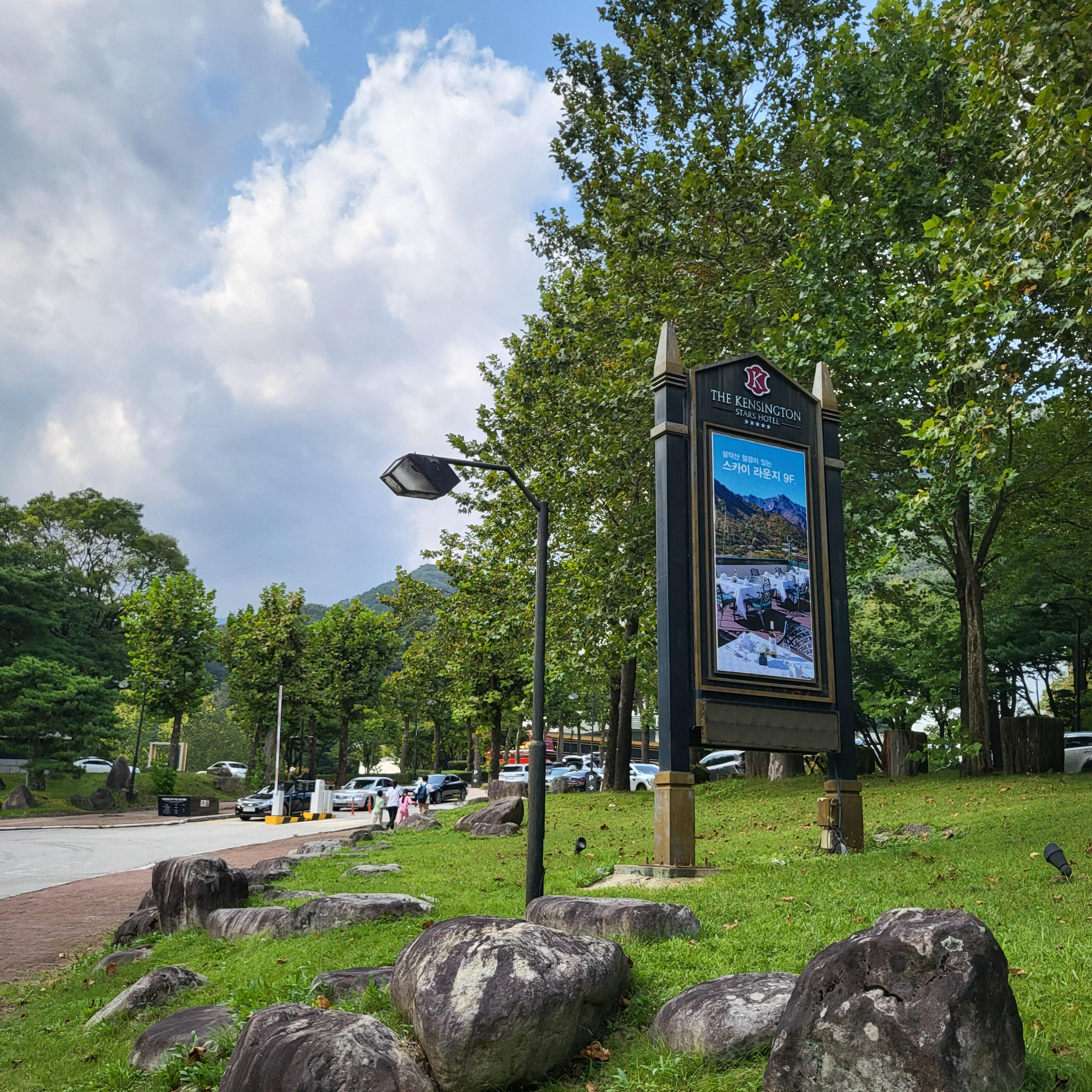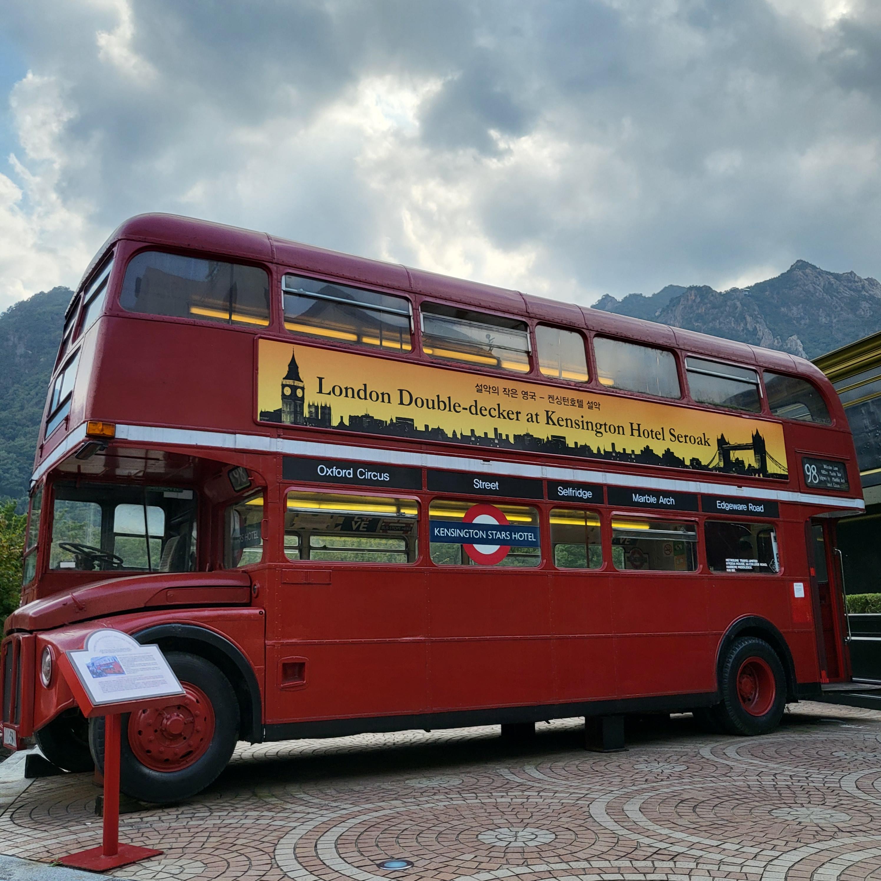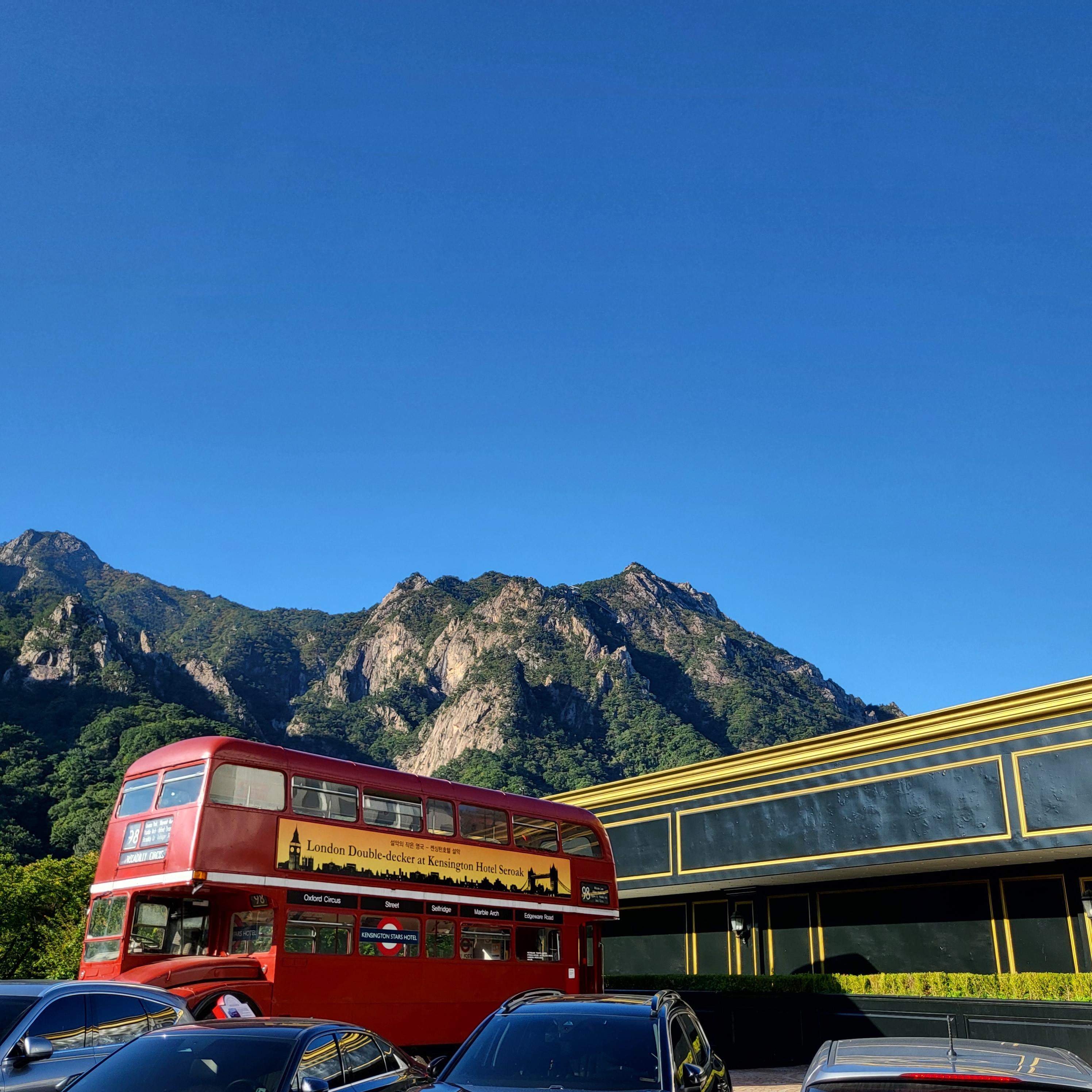 지하 주차장 없이 지상 주차장만 있는데, 주차장으로 가면 켄싱턴 호텔의 랜드마크가 불리는 빨간 버스가 바로 보인다. 빨간 버스 자체도 클래식한 감성이 많이 느껴지는데, 뒤에 설악산 절경과 함께 보면 정말 장관이다. 여기 포토스팟이니 무조건 사진 100장 찍어야 함!