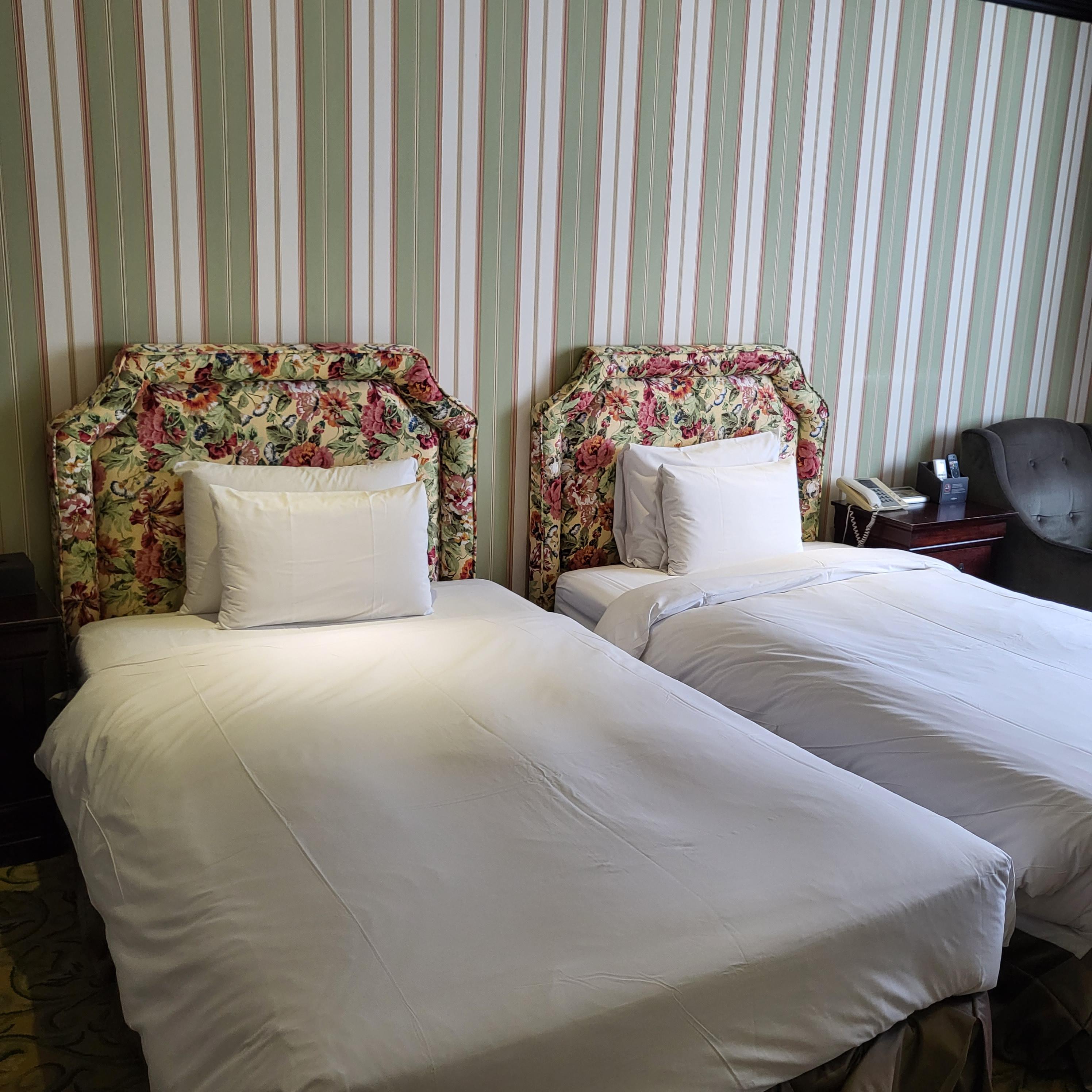 나는 이그제큐티브 트윈 방에서 2박 3일 있었는데, 가격이 싼 편이 아니었음에도 불구하고 방안 내부 시설이 꽤나 낡았고, 방 크기도 그렇게 크지 않았다. 시설 얘기를 좀 해보자면... 화장실에 불이 다 안 켜지거나, 벽지가 좀 올드한 꽃무늬라거나... 방 안에 있는 테이블 등이 오래돼서(이곳저곳 조금씩 상처 난 곳들이 많음) 깨끗이 치워도 약간 더러워 보이는? 착시 효과까지... 솔직히 처음 들어갔을 때는 청소가 안된 줄 알았다...ㅎㅎ