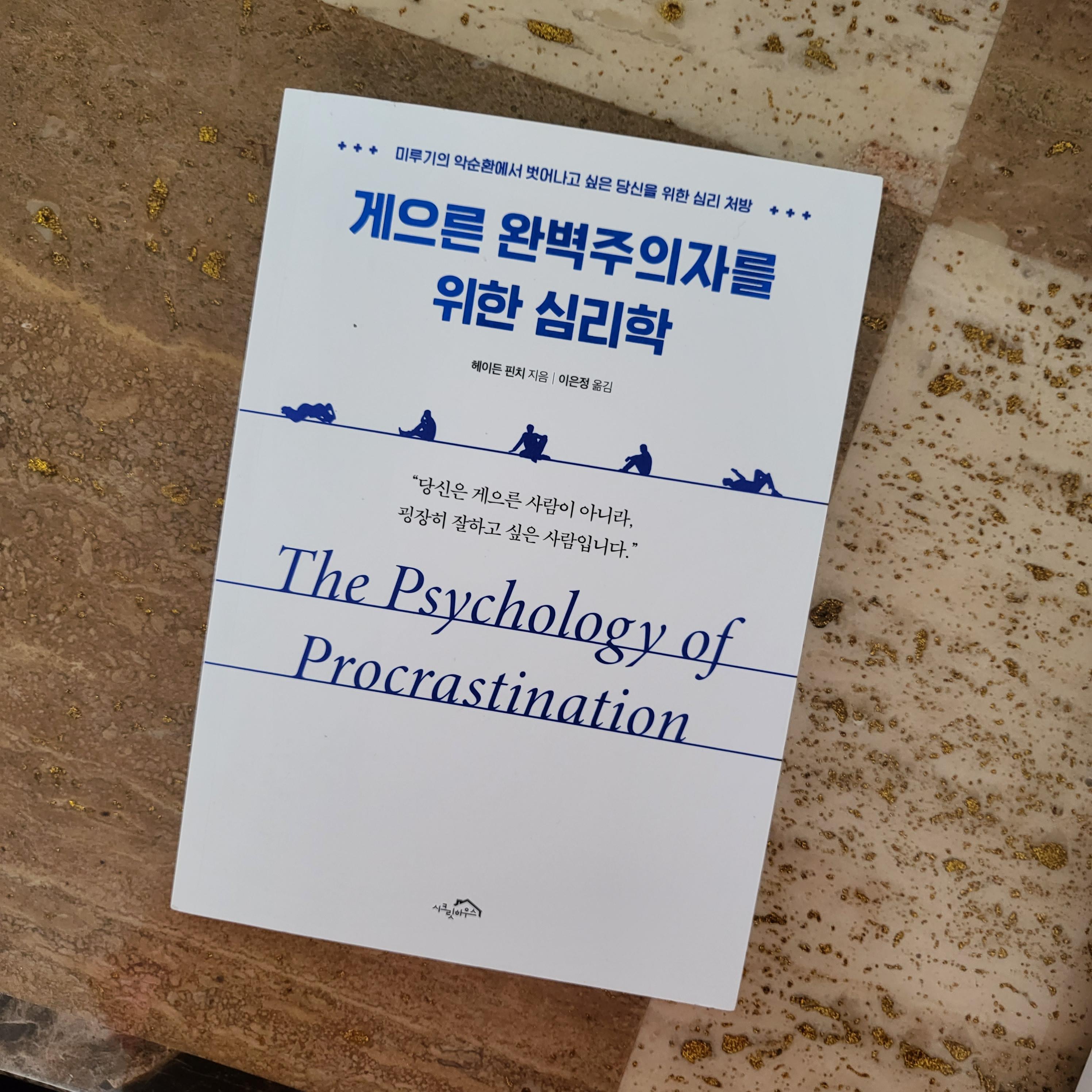 "게으른 완벽주의자를 위한 심리학"은 이 전 리뷰 책이었던 "부자의 그릇"을 사면서 같이 샀던 책이다. 이 책의 부제는 "미루기의 악순환에서 벗어나고 싶은 당신을 위한 심리 처방"으로 영어 제목은 " The psychology of Procrastination"이다. Procrastination을 한국말로 표현하자면 '해야 할 일이 있다는 것을 인지하고 있음에도 불구하고 미루는 것'을 의미하는데, 나라는 사람을 영어로 표현하자면 바로 저 procrastination 이 아닐까 한다. (ㅎㅎ...) 회사 일은 MBTI J처럼 To do list까지 만들어서 계획적으로 하나하나씩 처리하는 나지만, 회사 일을 제외한 나머지 내 생활의 영역에서는 대문자 P이다. 예를 들면 내 인생의 큰 터닝포인트인 비자 관련 자료를 정리하는 데에도 정말 끝까지 미루고 미루다가 더 미루면 미국에 못 갈 수도 있겠다 싶을 때쯤 시작했다. 다행히 내 미루는 습관이 비자 관련 일에 영향을 주지는 않았지만 이러다가 스스로에게 실망할 만한 일이 생길 수도 있겠다 싶어 이 책을 읽기 시작했다.
